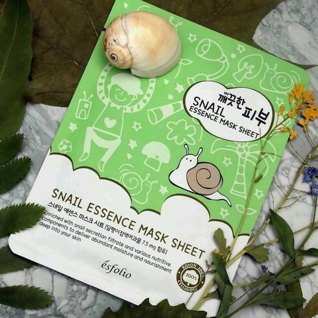 Snail Essence Mask Sheet Esfolio - Cleanse the face and apply softener. Place the mask along the facial line.