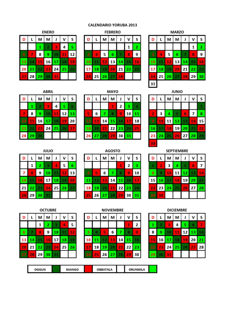 Aquellas que no aparezcan incluidas. El calendario yoruba incluye los dias en que deben ser adoradas las diferentes deidades. The yoruba calendar (kojoda) year starts from 3 june to 2 june of the following year. Explore the yoruba calendar and traditional timekeeping methods, revealing how. According to this calendar, the gregorian year.